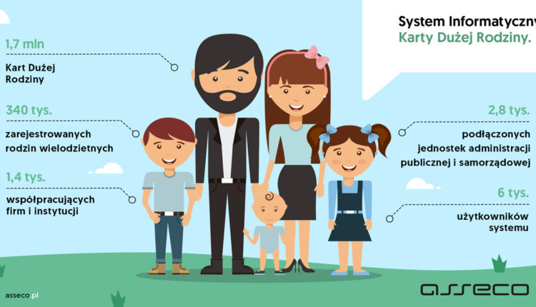 Karta Dużej Rodziny to nie tylko wsparcie ze strony firm i instytucji publicznych, które oferują zniżki i dodatkowe uprawnienia dla rodzin z co najmniej trójką dzieci, ale również rozbudowany system informatyczny, który umożliwia działanie tego programu. Asseco kompleksowo obsługuje SI KDR, w którym zarejestrowanych jest już ponad 340 tys. rodzin wielodzietnych i podłączonych 2,8 tys. jednostek administracji publicznej i samorządowej.
